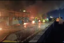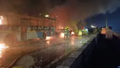 मोतीचूर फ्लाईओवर पर भीषण हादसा: चार वाहनों की टक्कर के बाद वाहनों में लगी भयानक आग
