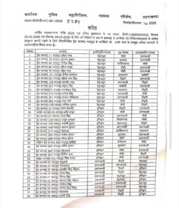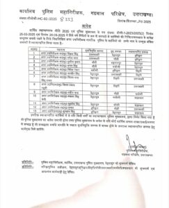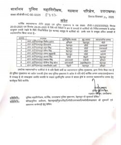 देहरादून/हरिद्वार।प्रदेश पुलिस महकमे में बड़ा फेरबदल किया गया है। पुलिस महानिरीक्षक गढ़वाल राजीव स्वरूप ने 300 से अधिक पुलिसकर्मियों के तबादले के आदेश जारी किए हैं। इनमें कांस्टेबल, हेड कांस्टेबल, महिला कांस्टेबल और अपर उपनिरीक्षक शामिल हैं। आदेश के अनुसार पुलिसकर्मियों को उनके वर्तमान जनपद से अलग-अलग जिलों में भेजा गया है।