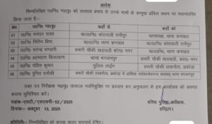 निरीक्षक रविन्द्र शाह थानाध्यक्ष कनखल और उपनिरीक्षक मनदीप सिंह को पुलिस लाइन भेजा गया है वहीं उपनिरीक्षक मनोहर रावत को एसएसआई रानीपुर से थानाध्यक्ष कनखल की ज़िम्मेदारी सौंपी गई है तो वहीं एसएसआई कनखल की ज़िम्मेदारी संभाल रहे नितिन चौहान को एक बार फिर एसएसआई रानीपुर तैनात किया गया है। कुल 1 निरीक्षक व 7 उपनिरीक्षकों के तबादले के आदेश जारी किए गए हैं