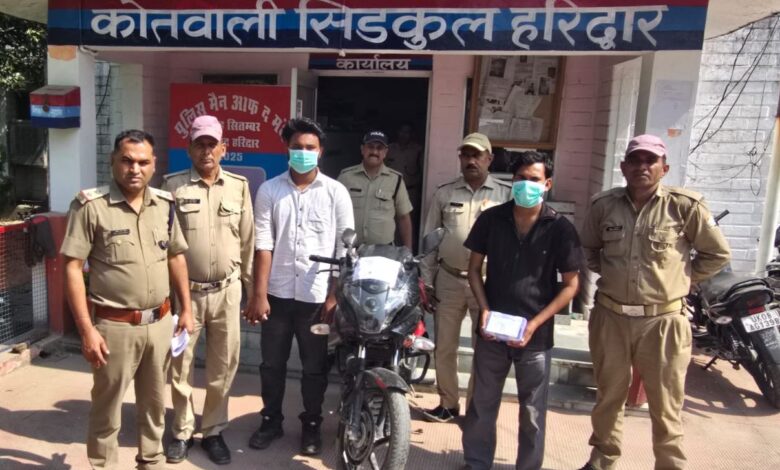 नाम व पता गिरफ्तार आरोपी 1- धर्मेंद्र पुत्र राजकुमार निवासी ग्राम जड़ौदा पांडा थाना बड़ागांव जिला सहारनपुर उत्तर प्रदेश हाल निवासी डेंसो चौक रावली महदूद। 2- सागर पुत्र विजयपाल निवासी ग्राम शिवपुरी थाना अफजलगढ़ जिला बिजनौर उत्तर प्रदेश हाल निवासी डेंसो चौक रावली महदूद थाना सिडकुल रावली महदूद सिडकुल हरिद्वार । बरामदगी 1. एक अदद मोबाइल वीवो कंपनी (संबंधित मुकदमा अपराध संख्या 533/2025 धारा 304 (2)BNS थाना सिडकुल) 2. एक अदद मोटरसाइकिल पल्सर 220 सीसी पुलिस टीम 1- उप निरीक्षक अनिल बिष्ट थाना सिडकुल जनपद हरिद्वार। 2- कॉस्टेबल 226 प्रमोद कुमार कोतवाली सिडकुल जनपद हरिद्वार। 3-कांस्टेबल 717 प्रदीप थाना सिडकुल जनपद हरिद्वार।