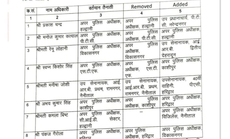 उत्तराखंड में 16 आईपीएस और 8 पीपीएस अफसरों के तबादले